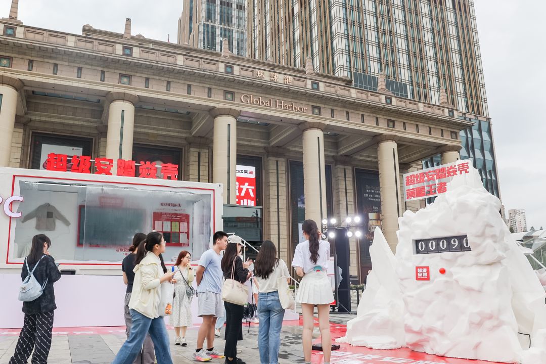 南广场的另一侧,潮流与生活方式的碰撞同样吸引眼球。超级安踏限时快闪店带来巨型Polar系列产品售卖区和极具反差感的超大冷柜车体验区,吸引了众多年轻消费者打卡体验。“这个冷柜车体验太有意思了,一下子穿越到冬天。”大学生李乐和同学们在体验区拍照留念。